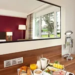 A buffet breakfast is available every morning. The on-site Les jardins dEnglos restaurant with French cuisine is a part of the hotel. The lounge bar is complemented by Wi-Fi and a TV. It also features a lounge for guests' comfort.